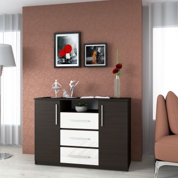 Comoda ELTAP, Lanzzi, 120x40x80 cm, MDF laminat, negru/stejar